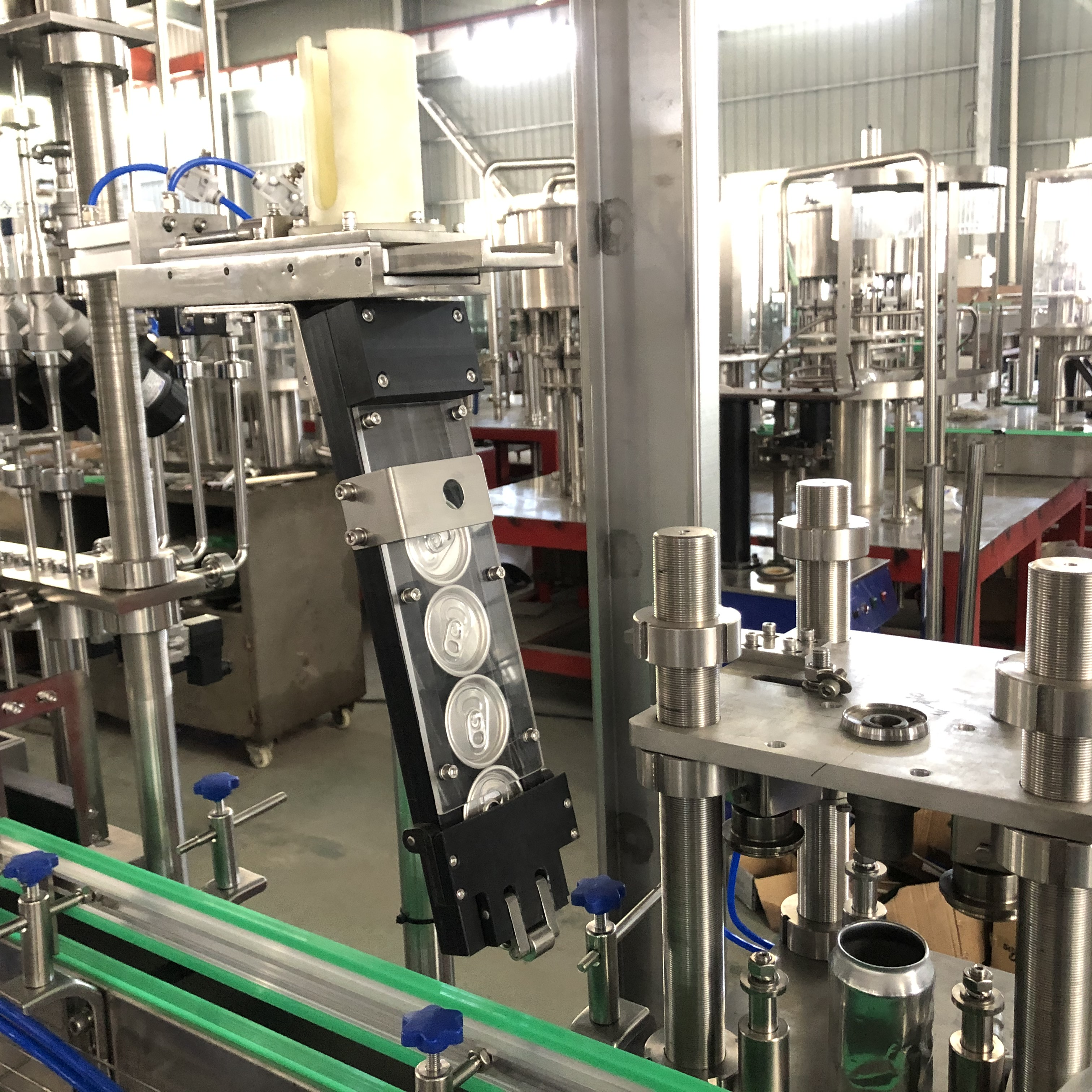 Equipped with 4 rinsing heads to clean empty cans before filling. Ensures hygienic packaging and better shelf life.