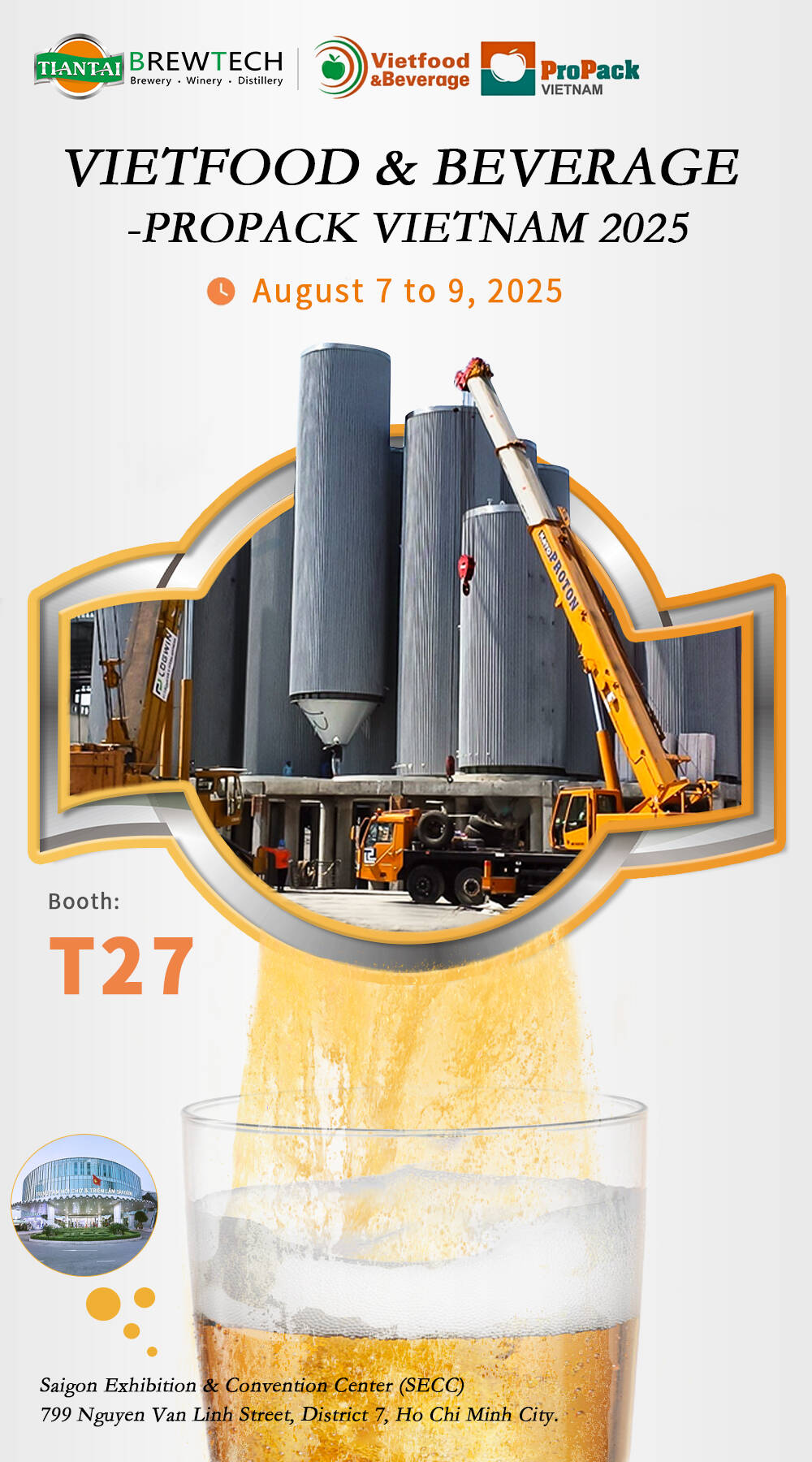 We are pleased to announce that Tiantai Brewtech will be attending Vietfood & Beverage – ProPack Vietnam 2025, a leading trade show for food, beverage, and processing technology in Southeast Asia.