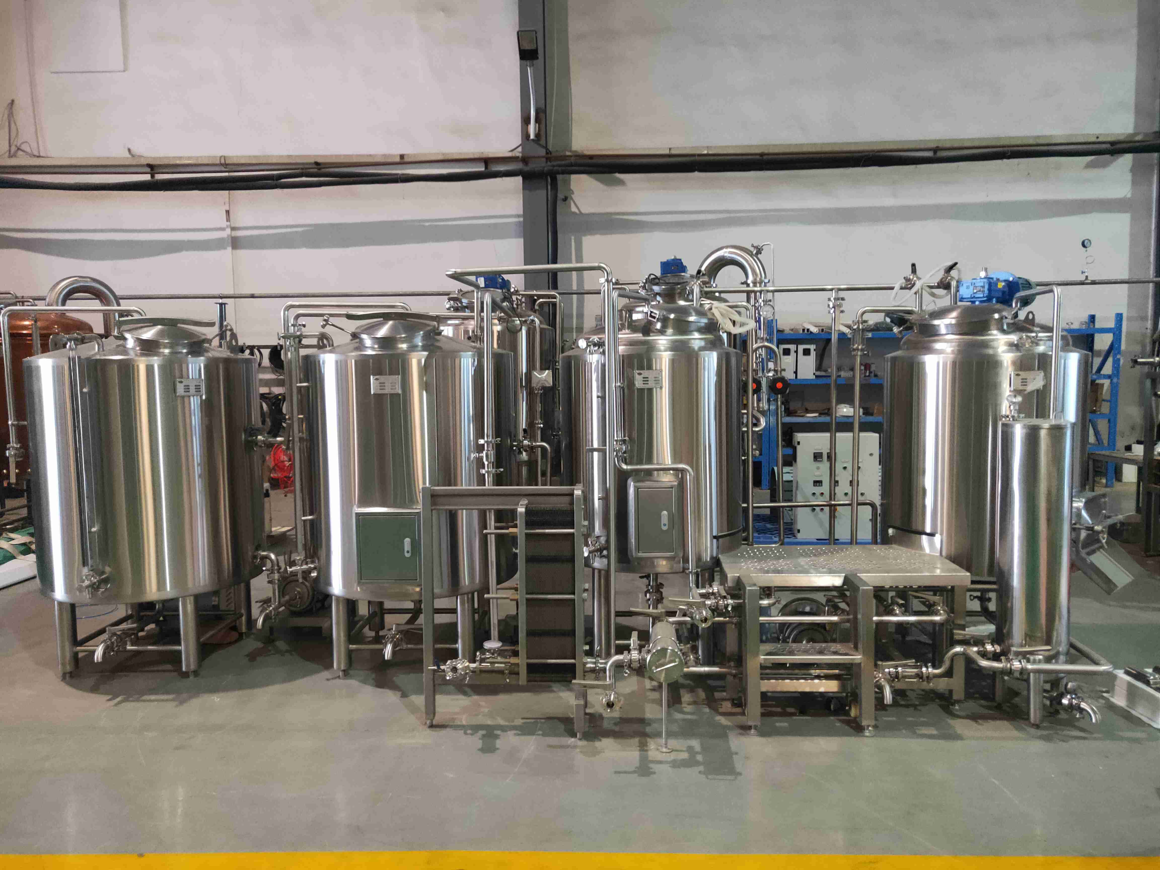 Our 300l beer brewing system is most popularly used in some small size craft breweries, brewpubs, restaurants, especially for opening small breweries and starting beer business from the very beginning. It occupies a rather small area and has a relative low requirement to budget. As shown in the photo, the standard layout of two vessel brewhouse is usually combined of mash/lauter tun, kettle/whirlpool tun and double size of hot liquor tank to ensure enough and timely supply of brewing waters, and also a double size of glycol water tank for cooling down the wort and fermenters.