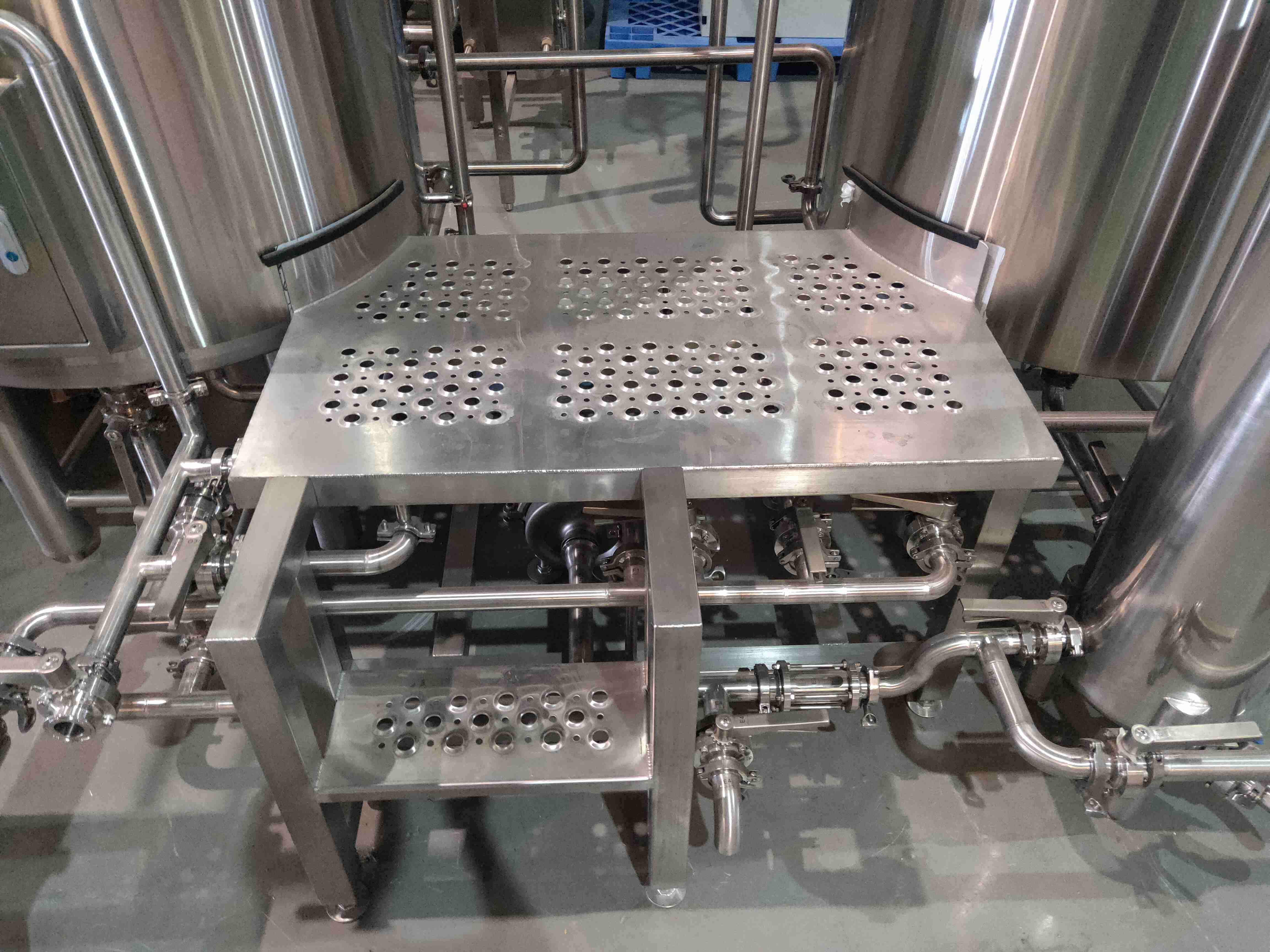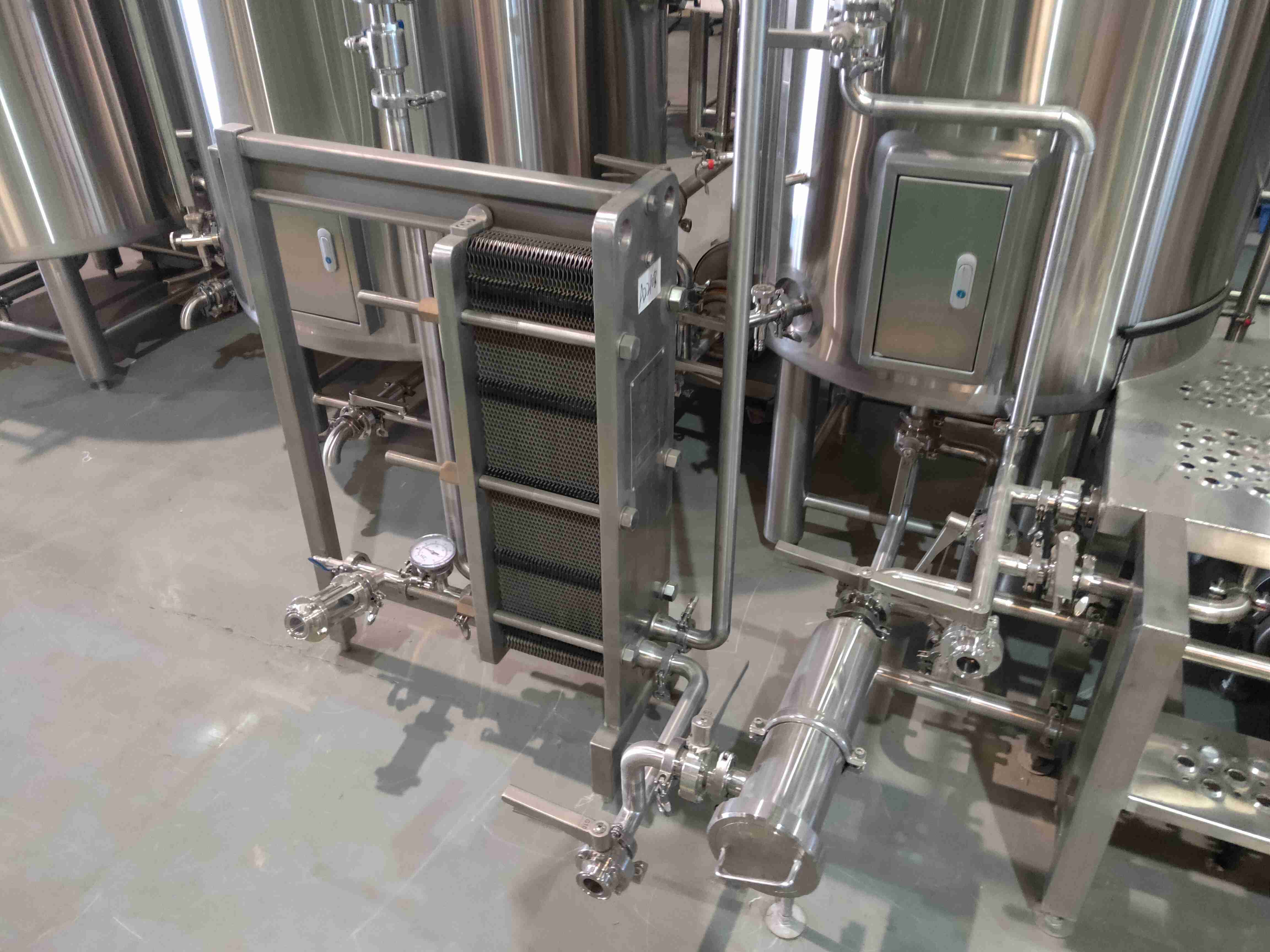 As requested of customer, the brewhouse adopts electric tubes instead of steam as heating sources. Electric heating is commonly used in this small size beer brewing systems to help reduce running cost further. Plate heat exchanger equipped to bring down the temperature of wort quickly before it enters into the fermenters and improves the heat exchange efficiency greatly.