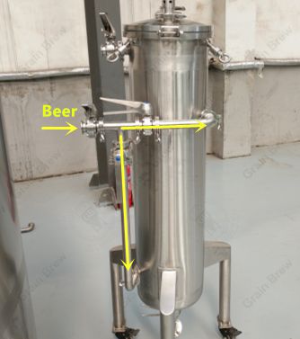 And then the beer is pumped back to the fermentation tank through the beer outlet on the bottom which is connected to the filter.