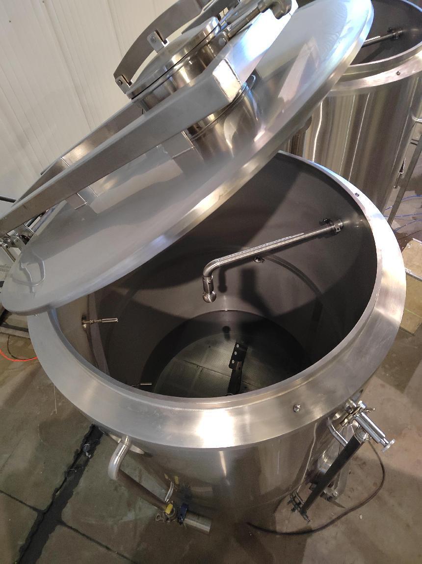 1000l brewing vessels with agitator mounted in below for mixing during the process,